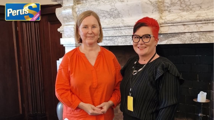 Kuvassa vasemmalta: Kaisa Juuso ja Lisa Wesin Perusnaiset kiittää hallitusta esityksestä korottaa omaishoidon tuen vähimmäispalkkiota ja lisätä taloudellista turvaa perhehoitajille. – Omaishoita...