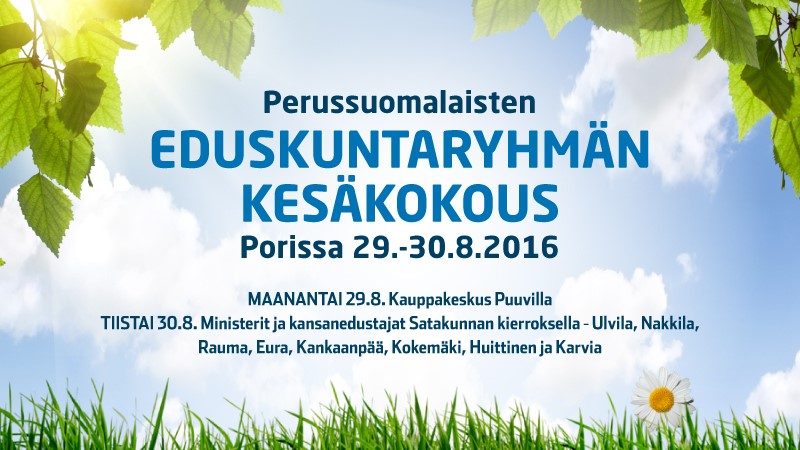 Perussuomalaisten eduskuntaryhmän kesäkokous järjestetään Porissa 29.-30.8.2016. Tervetuloa tapaamaan ministereitä ja kansanedustajia!