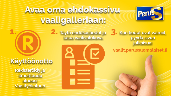 Hyväksytty PS-kuntavaaliehdokas: avaa oma esittelysivusi vaaligalleriaan