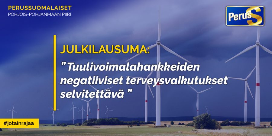 Pohjois-Pohjanmaan Perussuomalaiset painottavat, että ”lottovoittoa” tavoittelevien tappiokuntien kannattaa olla varovaisia tuulivoimasopimusten kanssa ja helpon talousparannuksen tavoittelun sijaan jäädyttää tuulivoimaloiden kaava- ja rakentamispäätökset siihen saakka, kunnes puolueettomat terveystutkimukset on tehty.