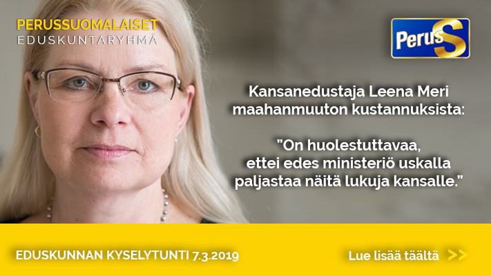 – Valtiovarainministeri ei kertonut, mikä on maahanmuuton nettokustannus valtiontalouteen. On huolestuttavaa, ettei edes ministeriö uskalla paljastaa näitä lukuja kansalle, Meri ihmettelee.
