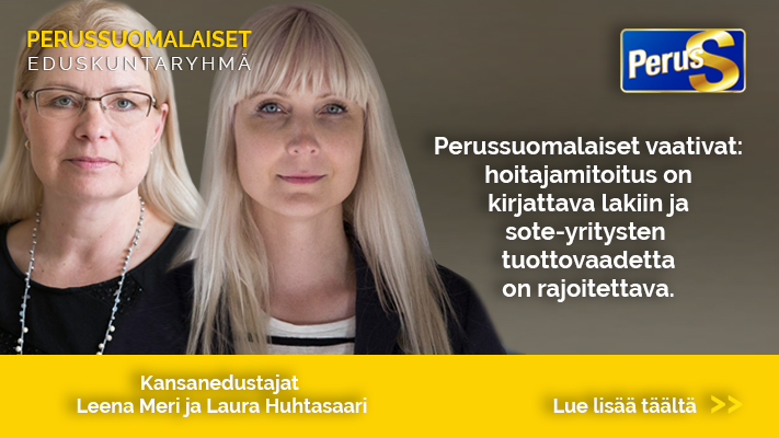– Perussuomalaiset vaatiikin sote-yritysten tuottovaateen rajoittamista. Kyseessä olisi samanlainen järjestely kuin sähköverkkoyhtiöiden kohdalla, joille on määritelty kohtuullinen tuotto, jota enempää voittoa ei saa tehdä. Tämä edistäisi toimivaa kilpailua sekä pienten kotimaisten toimijoiden pysymistä itsenäisenä, toteaa kansanedustaja Laura Huhtasaari.