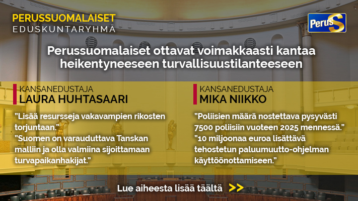 Perussuomalaisilta tiukkoja vaatimuksia turvallisuustilanteen parantamiseksi
