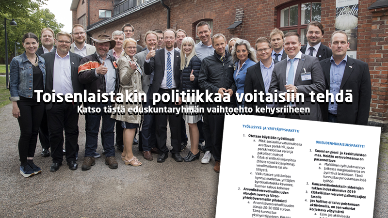 Perussuomalaisten eduskuntaryhmä kokosi kehysvaihtoehtonsa yksiin kansiin.