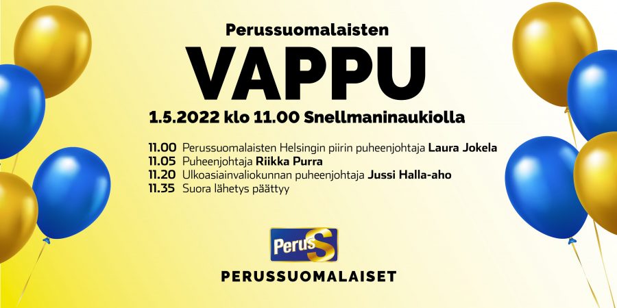 Perussuomalaiset juhlistavat vappua kaikkialla Suomessa. Suomen Uutiset tarjoaa perinteiseen tapaan katsottavaksi perussuomalaisia vappupuheita Snellmaninaukiolta Helsingistä.