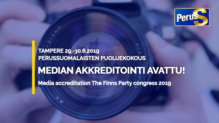Media accreditation The Finns Party congress Tampere 29.-30.6.2019