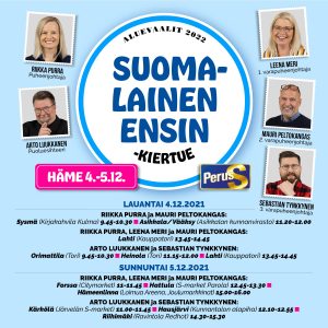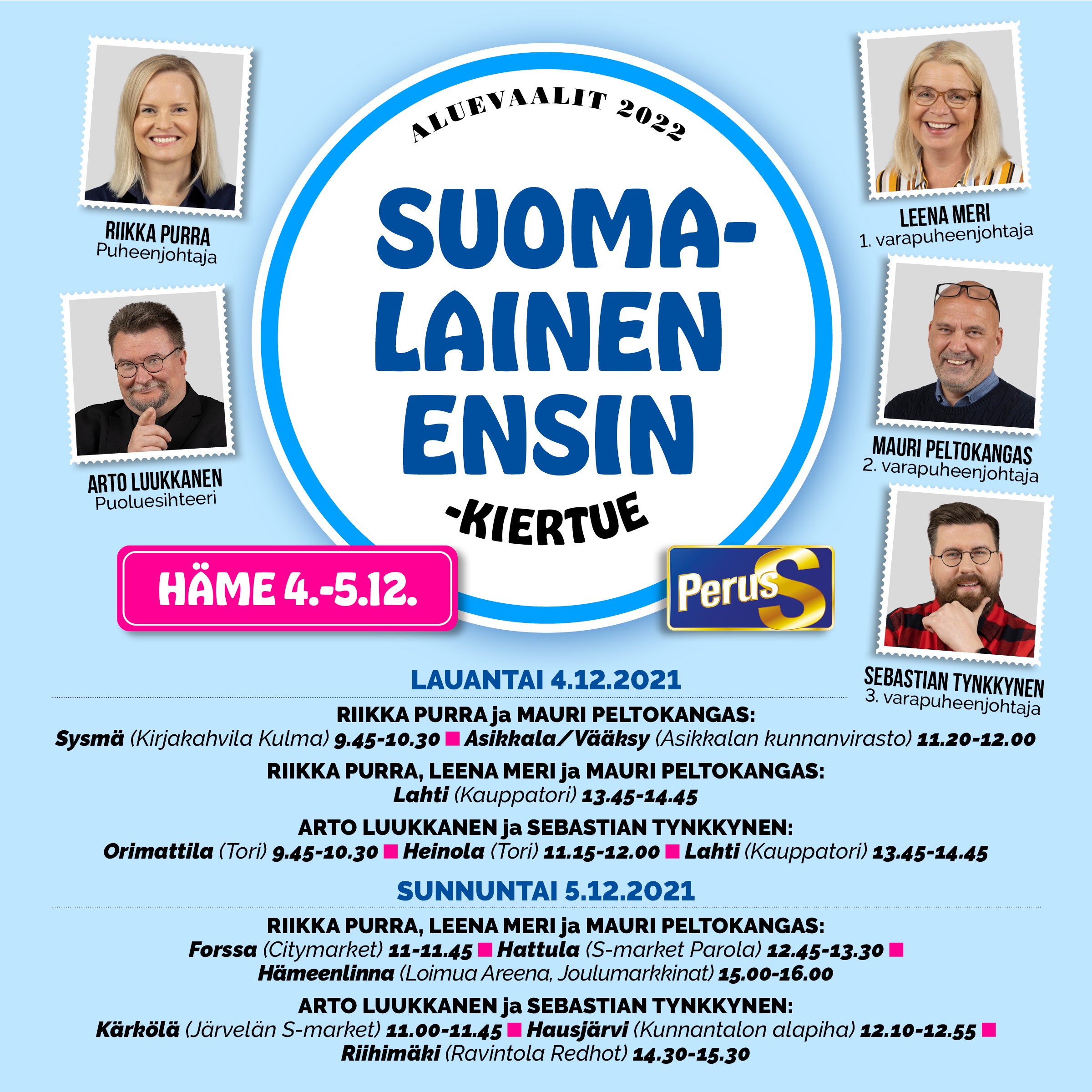 PS:n SUOMALAINEN ENSIN -aluevaalikiertue saapuu Hämeeseen 4.-5.12