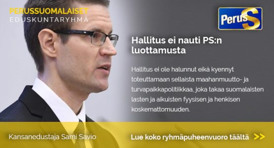 Kirjoitettu 24.11.2025 | AjankohtaistaKannanottoTiedote Kansanedustaja Merja Rasinkangas lasten oikeuksien viikkona: ”Heinätorin erityiskoulun lakkauttaminen Oulussa uhkaisi lasten oikeuksia” Oulun kaupungin esitys Heinätorin erityiskoulun lakkauttamisesta kesällä 2027 herättää huolta erityistä tukea tarvitsevien lasten hyvinvoinnista. Lasten oikeuksien viikkona kansanedustaja ja Oulun kaupunginvaltuutettu Merja Rasinkangas (ps.) muistuttaa, että tukea tarvitsevien oppilaiden oikeus turvalliseen oppimisympäristöön ei saa joutua säästöpainei... Lue lisää >