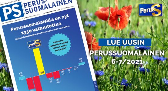 6-7/2021 Politiikkaosio: PDF >> Järjestöosio: PDF >> Tässä numerossa: Pääkirjoitus, Matias Turkkila: Kun poliitikko puhuu, sanat tarkoittavat päinvastaista Perussuomalaisista kuntavaalien suurin voittaja: 1350 valtuustopaikkaa - kunnissa tapahtuu massiivinen muutos Kuntavaalien tuloksissa selkeä trendi: Keskusta, SDP ja vihreät vajoavat – perussuomalaiset kasvaa voimakkaasti Kolumni, Jussi Halla-aho: "Onnittelut uusille valtuutetuille!" Perussuomalaiset tivasi ha... Lue lisää >