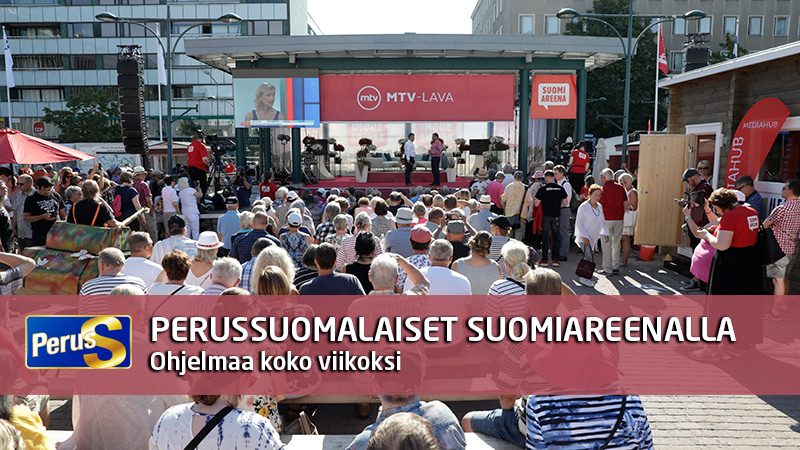 Perussuomalaiset osallistuvat vahvalla edustuksella heinäkuun poliittiseen suurtapahtumaan, Porissa järjestettävään SuomiAreenaan. Tälle sivulle kootaan poimintoja keskustelutilaisuuksista. Täydellinen ohjelmaluettelo löytyy MTV3:n sivuilta. Perussuomalaisten oma puoluepäivä on torstaina, ja silloin nähdään PS-päätapahtumana debatti ruotsidemokraattien kanssa.
