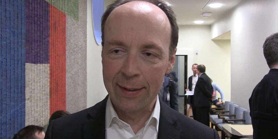 Eduskunta, 8.5.2019. Puheenjohtaja Jussi Halla-aho (ps.) kommentoi Suomen Uutisille Antti Rinteen (sdp.) päätöstä kasata hallituspohja punavihreistä …