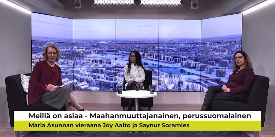 Maria Asunta ja meillä on asiaa. Vieraina Joy Aalto ja Sayunur Soramies, kaksi perussuomalaista maahanmuuttajanaista. Miten maahanmuuttajasta tulee …