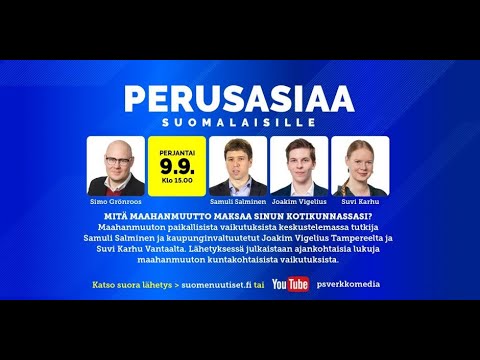 Maahanmuuton paikallisista vaikutuksista keskustelemassa tutkija Samuli Salminen ja kaupunginvaltuutetut Joakim Vigelius …