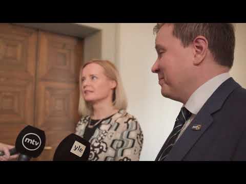Eduskuntaryhmän puheenjohtaja Ville Tavio ja perussuomalaisten puheenjohtaja Riikka Purra kertovat medialle …
